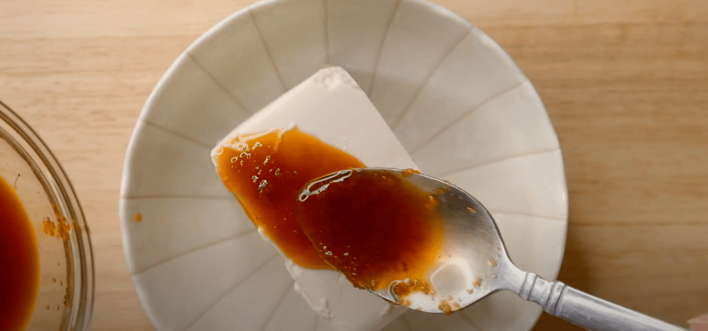 두부 위에 준비한 소스를 골고루 뿌립니다.