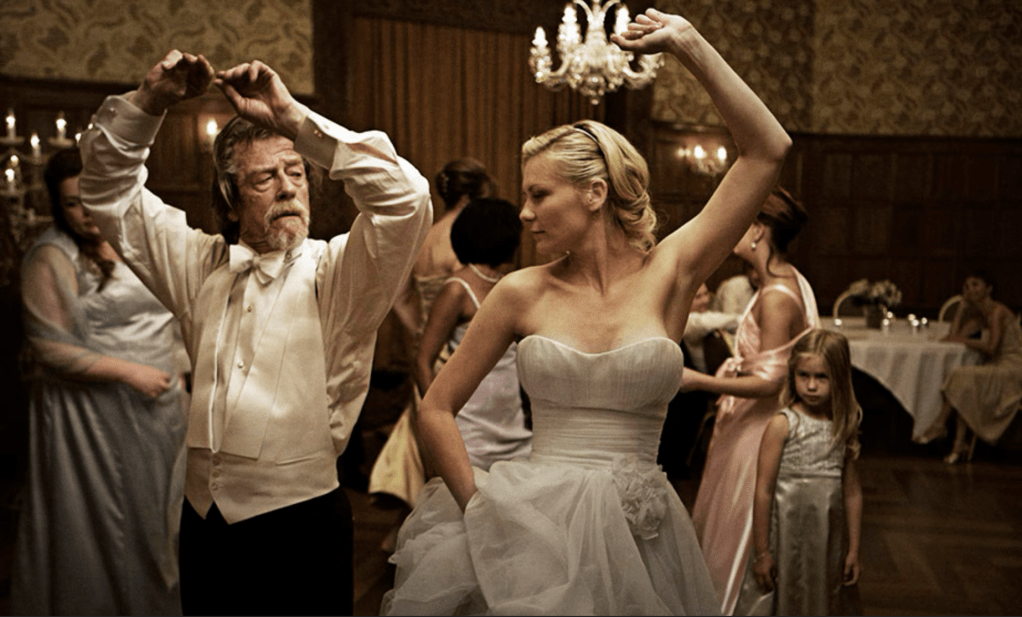 → 저스틴의 웨딩드레스는 단순한 의상이 아니라, 그녀가 사회적 기대에 맞추려는 시도와 동시에 그 속에서 벗어나려는 심리적 갈등을 상징한다. - 행성 ‘멜랑콜리아’의 의미: